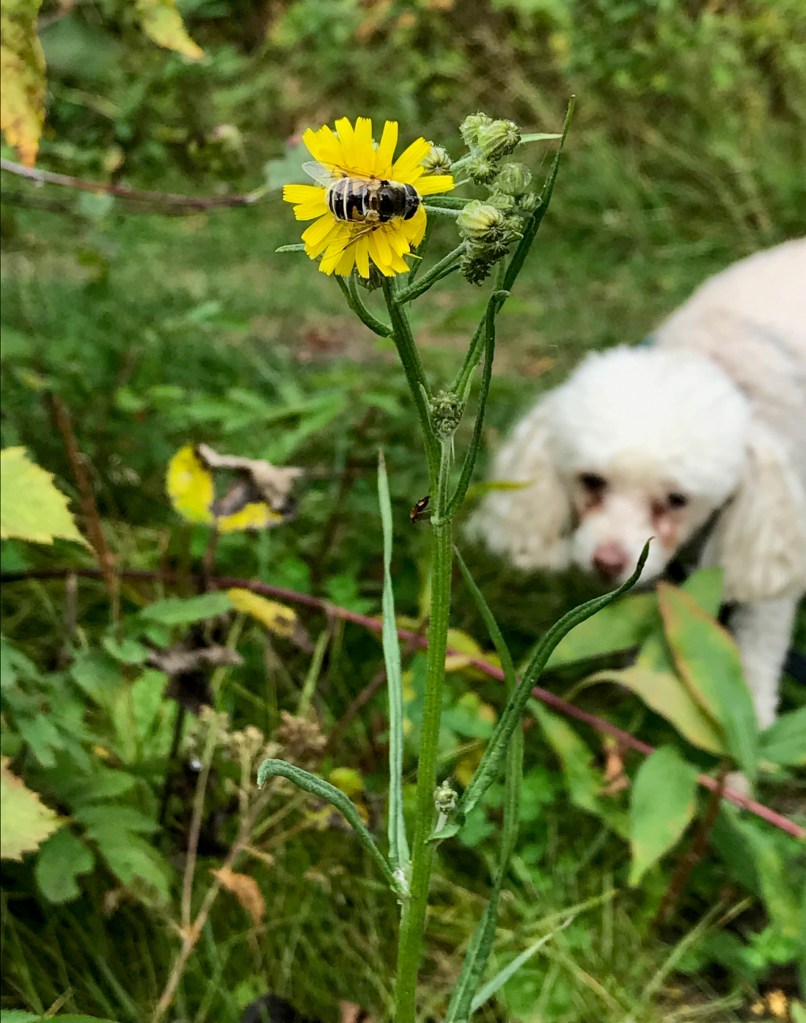 Episodic watery visions. The soothing shores of Astotin Lake come into view as we emerge from time to time on our path through the woods. Imagine bees, berries, bison, beaver, birds and a poodle.