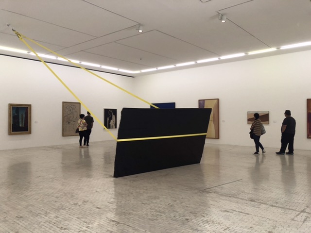 “Sin titular (Zimbabwe)” 2014 by Jose Eduardo Davila Zozano (Guadalajara, Mexico); The Corridor” (1976) by George Segal (New York, USA); 5 b&w paintings by Mario Garcia Torres (Monclova, Mexico) , Museo Tamayo, Mexico City
