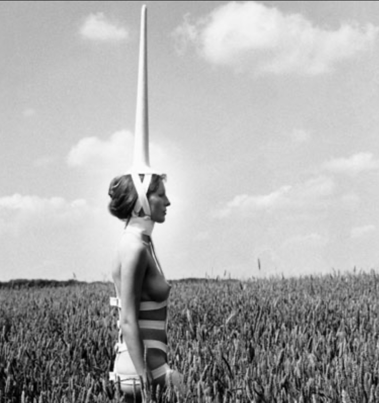 German performance and installation artist and filmmaker, Rebecca Horn created a brilliant horned sculptural headpiece and bodice, the feature image for this blog post. In the performance Unicorn (1970/2), unicorn and woman are one. I remember watching one of her films about 25 years ago and marvelling at the elegant estrangement that she created with her work.