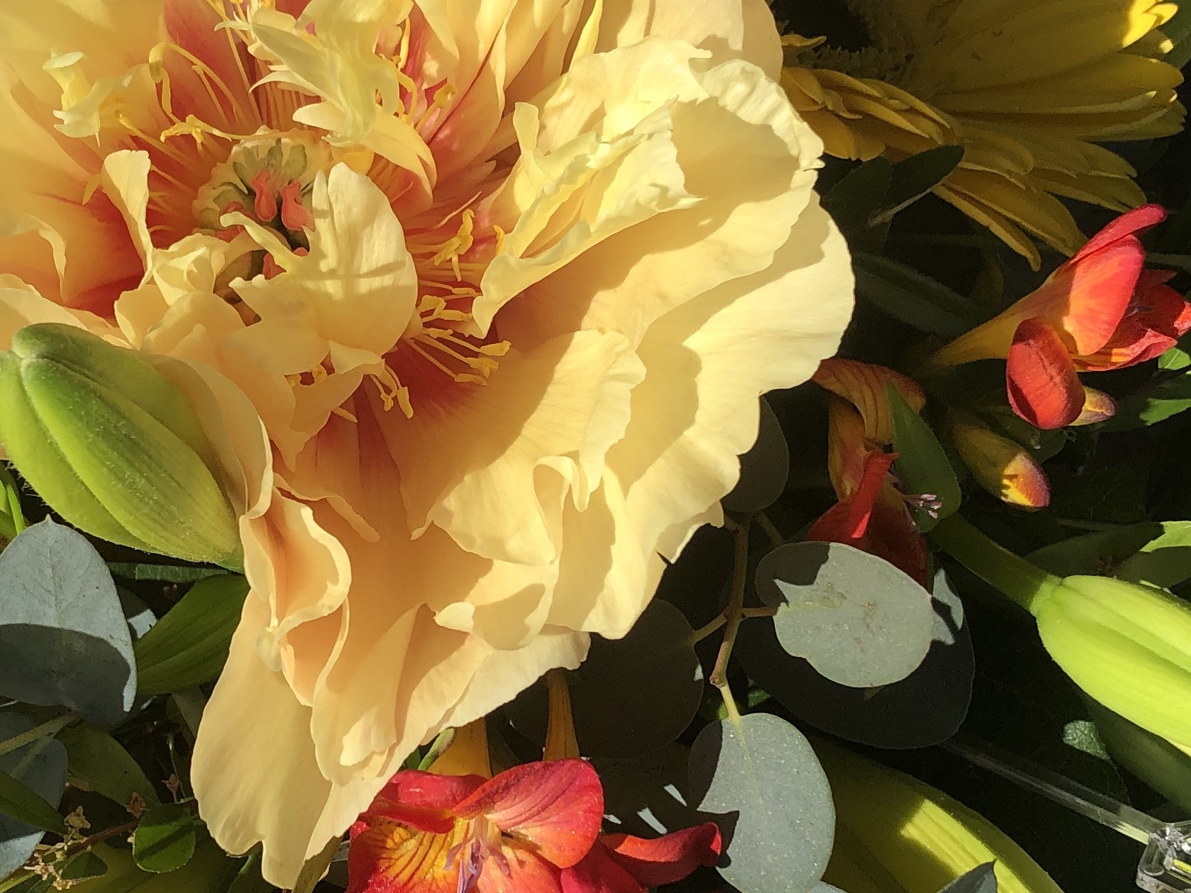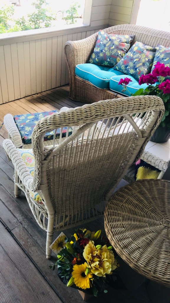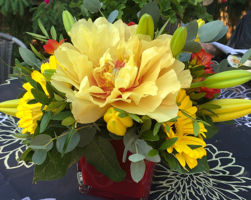 This morning while you are in the bath, Zocolo, the local florist, calls to say they hid a bouquet behind your porch chair.