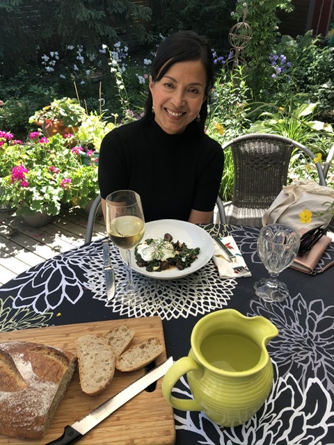 As I drove through the city, I passed T&T, a large Chinese grocery now owned by Loblaws. In response to the invitation at the entrance, I donned my mask and sanitized my hands; the entry to the store was monitored by someone keeping track of numbers. Inside I gasped with delight – the usual gorgeous produce was on display. I bought fresh lichee and mushrooms and greens. Fish and fish sauce. The groceries are from all over Asia – Indonesian and Thai and Chinese and beyond. I indulge in prepared Chinese food – eggplant and tofu and delicious fish with tons of garlic.