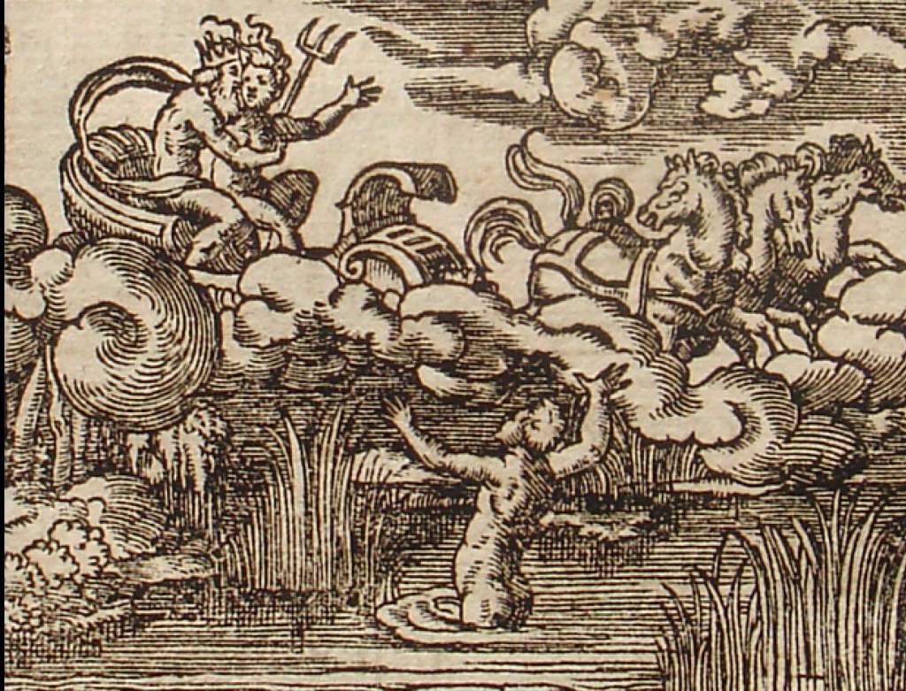 Cyane dissolves in tears, an engraving (1581) by Virgil Solis to illustrate Ovid’s tale
