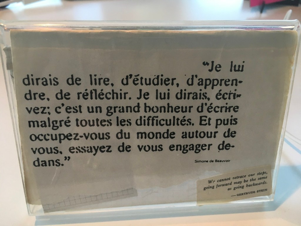 This blog post was revised and expanded January 9, 2020. And January 14. Thank you to Nathalie Kermoal for refining my translation of Simone de Beauvoir. (Note: By the time I finish writing and editing these bits and pieces, errors and inconsistencies remain. So please let me know if you spot them.)