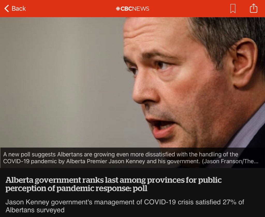 Our provincial government has been derelict in their duties. They did not take proper precautions to make schools safe. And they did not close down restaurants and bars and gyms and other COVID-spreading businesses until much too late. The Alberta UCP’s ideological commitment is to “the economy” over citizens’ health. And this strategy has been a disaster. I’ve taken to calling the head of public health Dr. Doom – but this may be unfair as some friends assure me she is doing her job as an advisor but this doesn’t make the quality of care improve. I would prefer if she would speak truth to power and criticize the government leaders assertively.