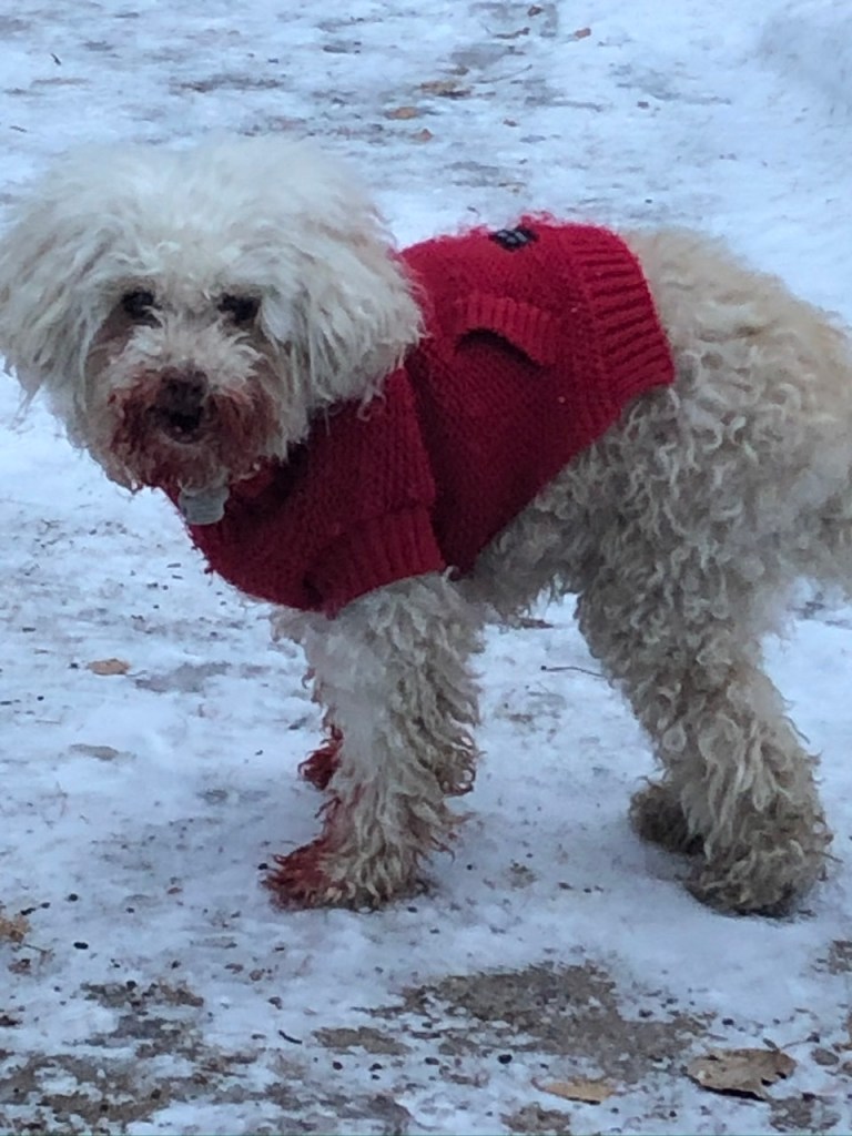 Simone de Bébé arrived in the right place at the right time. Initially I drove on Boxing Day to an emergency vet clinic where, due to COVID, I had to leave Simone for a few hours as they were backed up with eight other dogs and a surgeon would have to examine her.