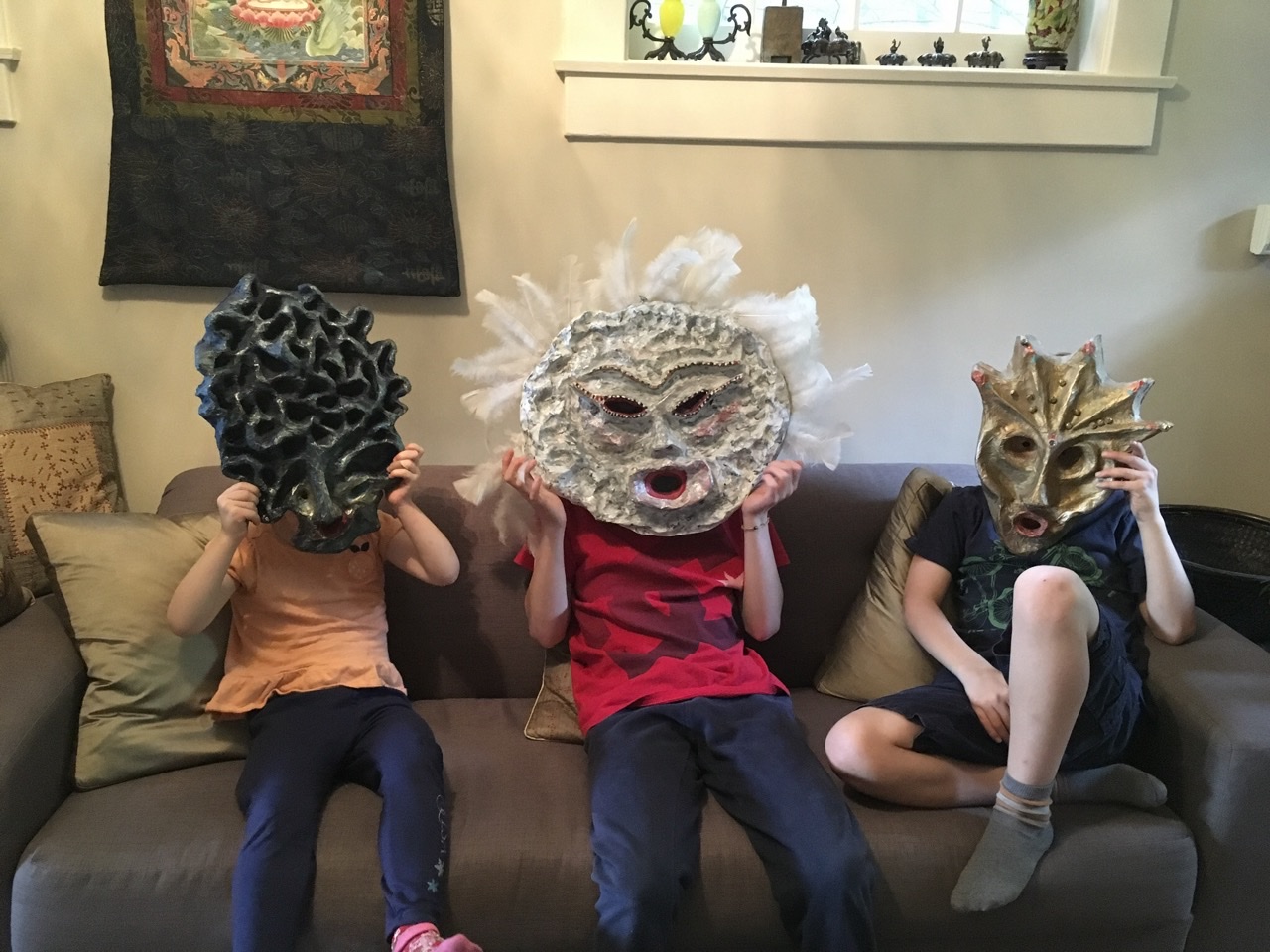 This journey of self-discovery involved a performance-based creative process that followed elaborate mask-making exercises where we each invented, sculpted, painted, and dressed up as characters that lived in our three masks. Over time the masks have become an imaginative play space for friends.