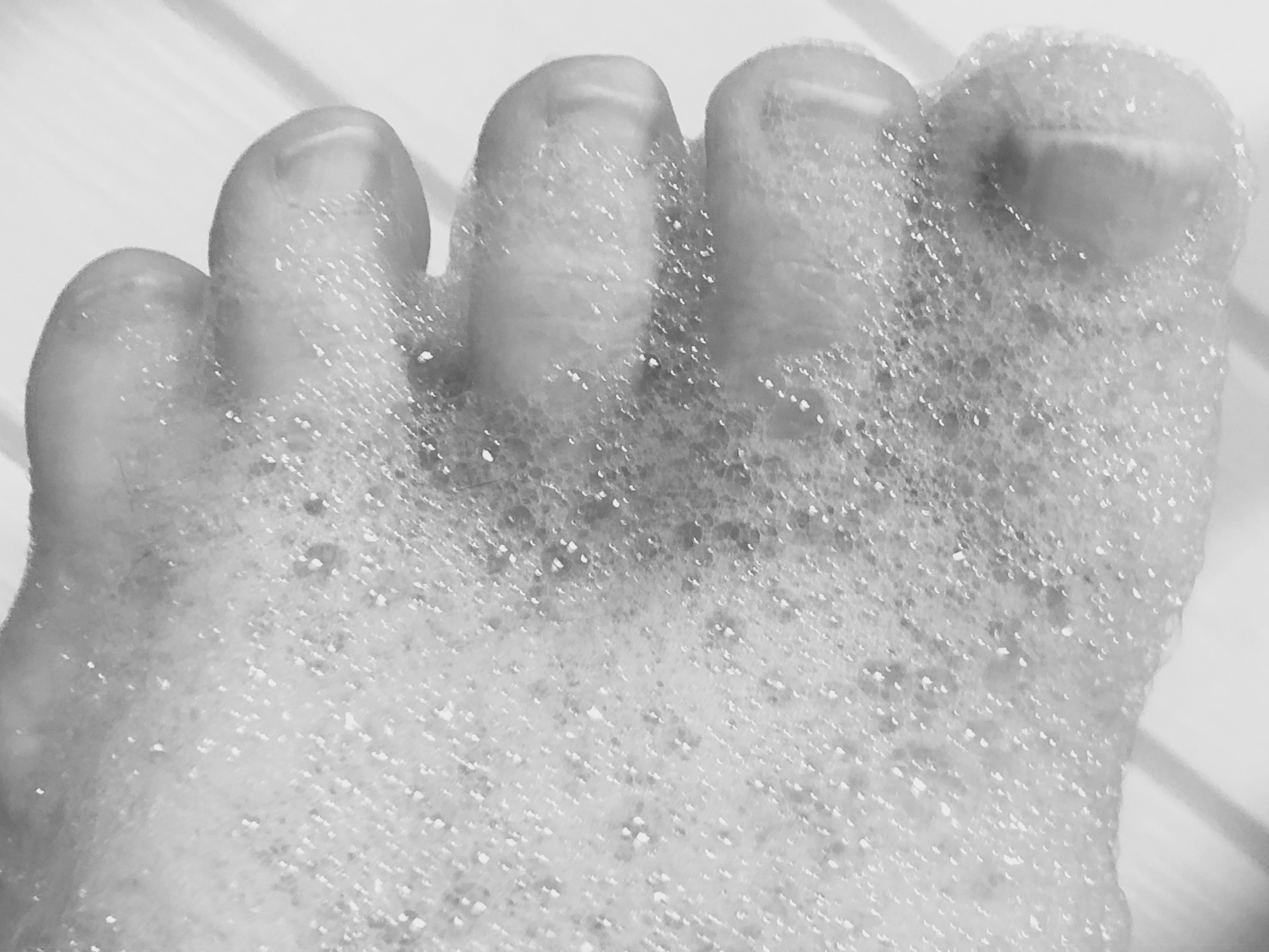 Embodied presence in the footed tub in the comfort of her warm home with hot water in abundance.