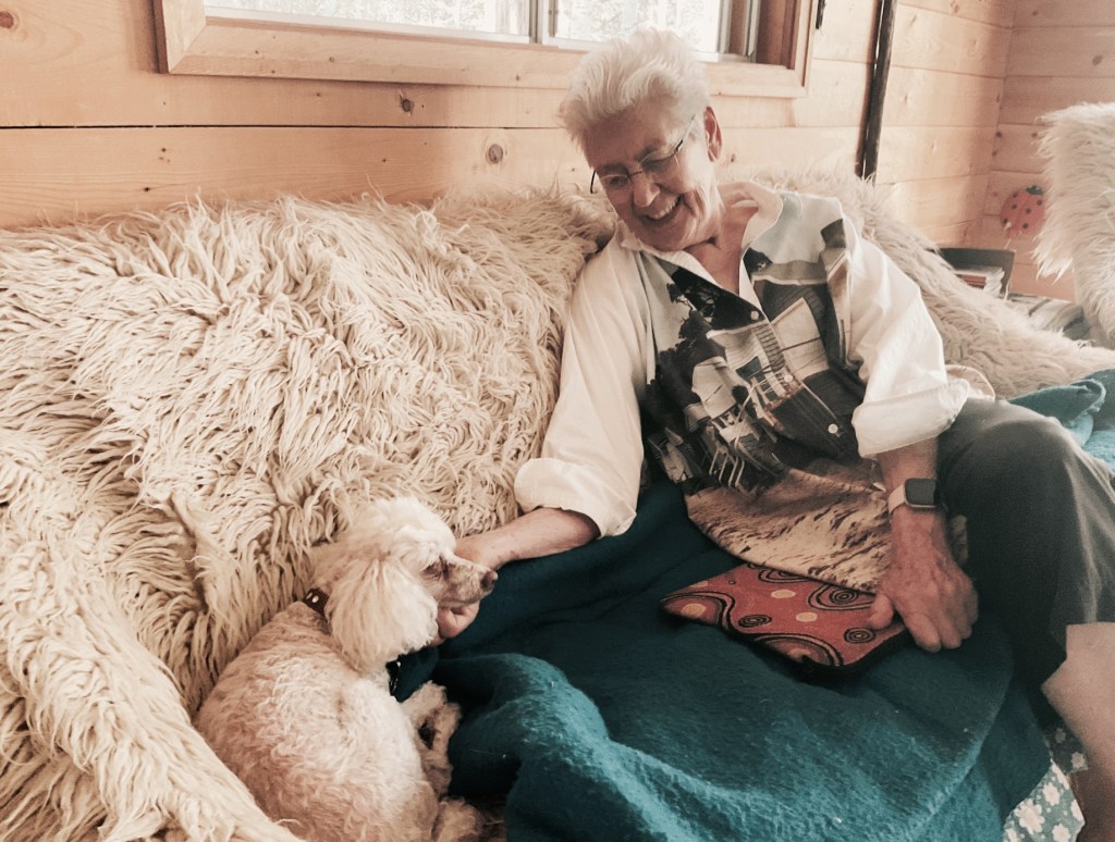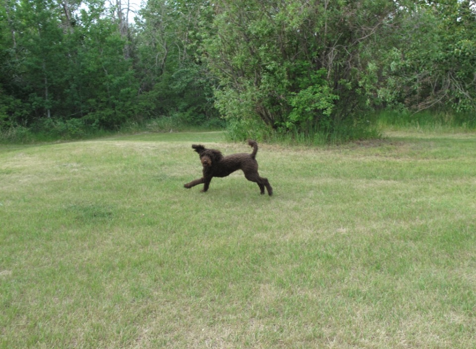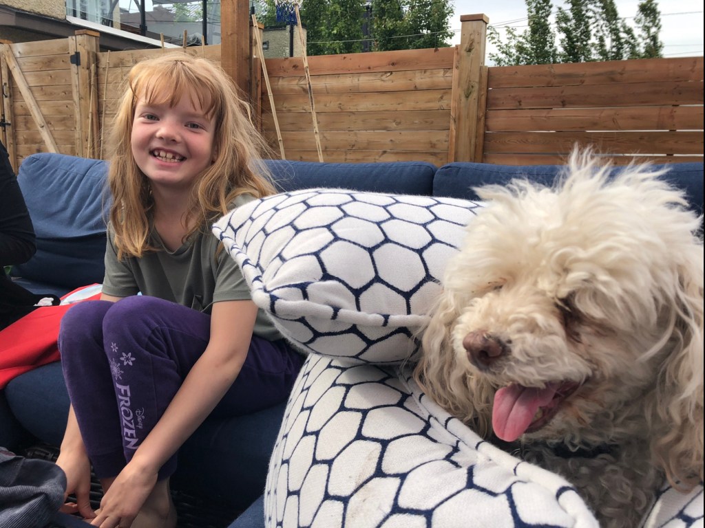 I found Ruby on Kijiji a year and a half ago. She lived at her mother’s house in Red Deer with an elderly couple who loved their dogs. Ruby is a West Highland Schnauzer Poodle cross — in other words, a delightful mutt. We arrived to meet Ruby just after New Year’s Day. She is now about one and a half years old. When we brought Ruby home, Simone was already partially blind, partially deaf, partially lame but I hoped Ruby might liven her up.