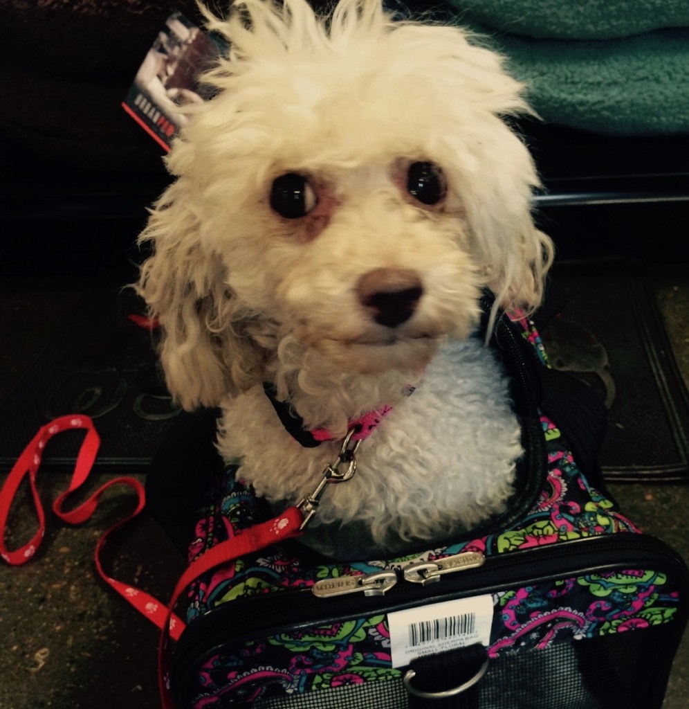 I “rescued” Simone in 2015 after the death of my daughter’s beautiful chocolate poodle Coco-Ming. That weekend our Coco-Ming died suddenly having run into the road nearby. She escaped the backyard through a hole in the gate that I thought had been mended. I felt guilt and loss and horror.
